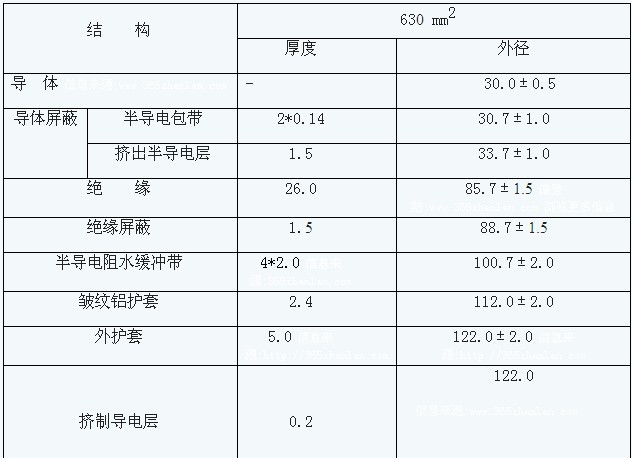 2500mm2;額定電壓500kV及